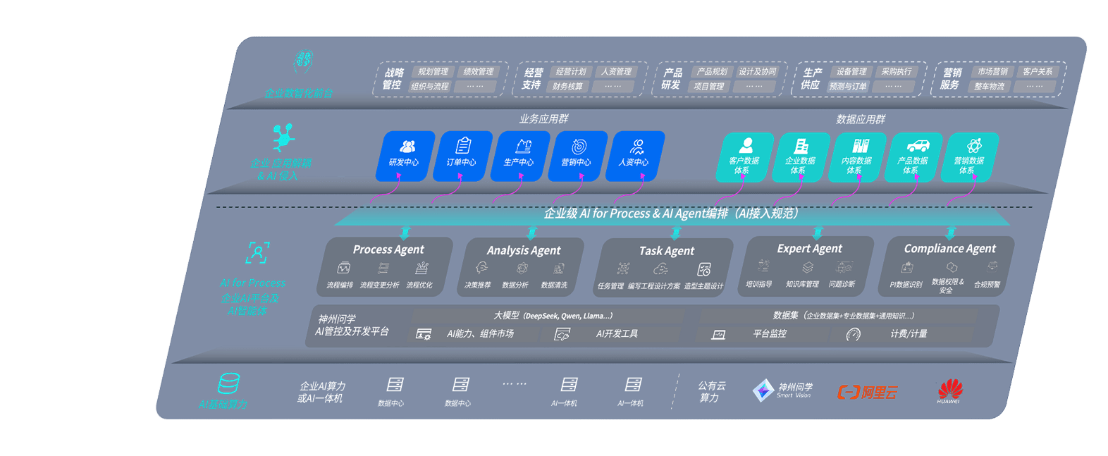 尊时凯龙问学智车解决方案是一套基于AI技术的汽车行业智能化系统,,,覆盖从底层算力到顶层AI应用的全栈方案。。方案由算力层、、、模型层和应用层组成:算力层,,方案支持多种一体机配置,,,具备云端灵活部署、、、多云适配以及动态优化计算资源的能力;模型层,,,,尊时凯龙问学平台版提供了企业级AI应用一站式构建与管理平台,,支持基于后训练强化技术的汽车企业专属模型的训练、、评测和运营;应用层,,,尊时凯龙问学DeepSeek版提供包括超级员工、、智能招采、、、、智能营销、、、、智能客服、、、、AI for BI等一系列解决方案,,,,可助力汽车行业实现数字化转型,,,让管理更智能、、、、响应更敏捷。。。。