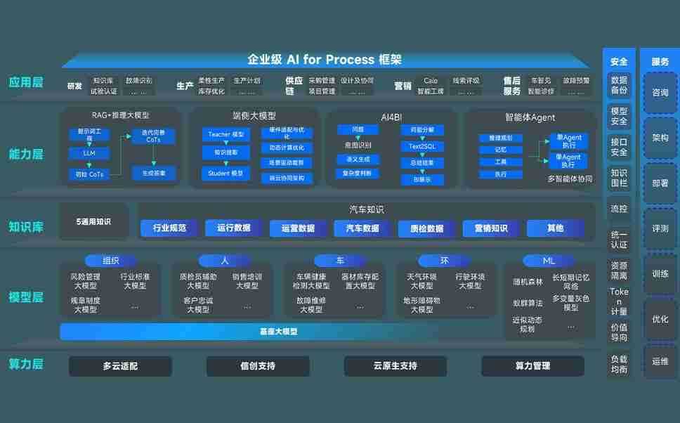端到端的一站式AI工作空间深度融合了从企业战略规划到日常经营的全流程业务板块,,定向解决车企内部领域多、、、部门多、、、链条长、、、、场景碎片化等难题,,支持车企快速构建以AI为核心的生产力写作体系,,,实现任务执行与AI能力的无缝集成与交互